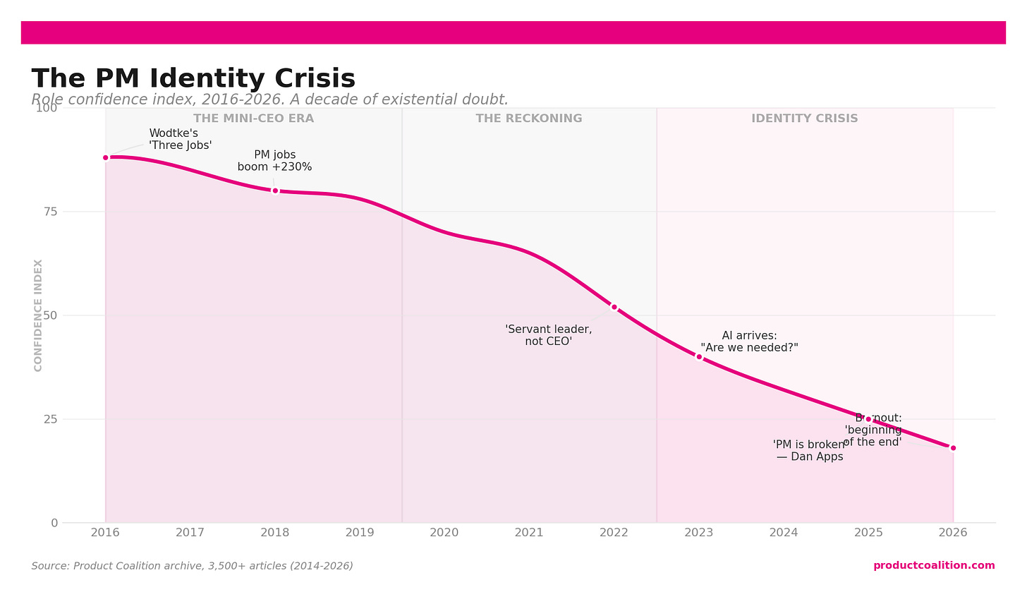 I spent the last week reading through a decade of Product Coalition articles about the PM role. What I found is less a career arc and more an identity crisis playing out in slow motion.