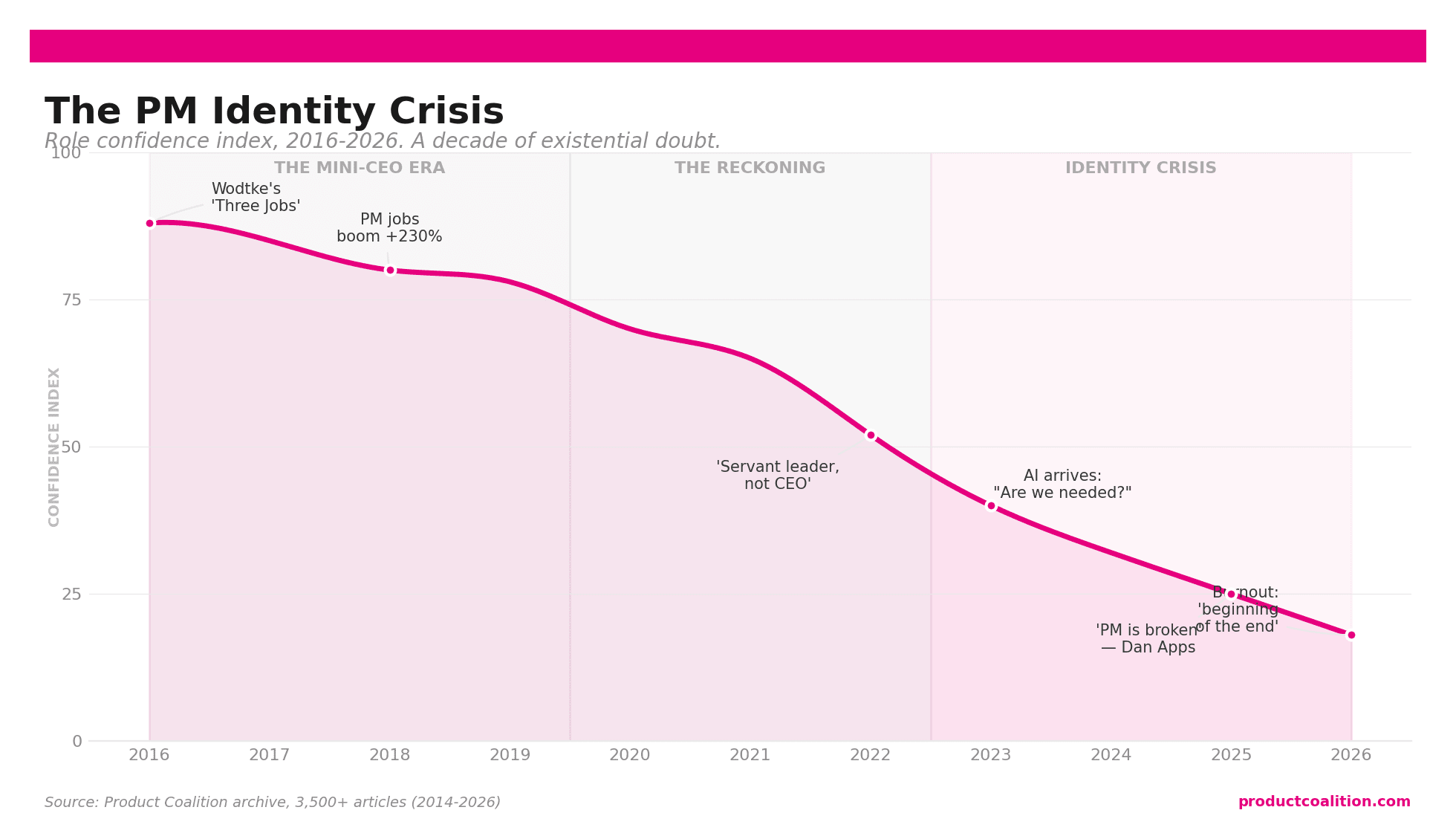 I spent the last week reading through a decade of Product Coalition articles about the PM role. What I found is less a career arc and more an identity crisis playing out in slow motion.